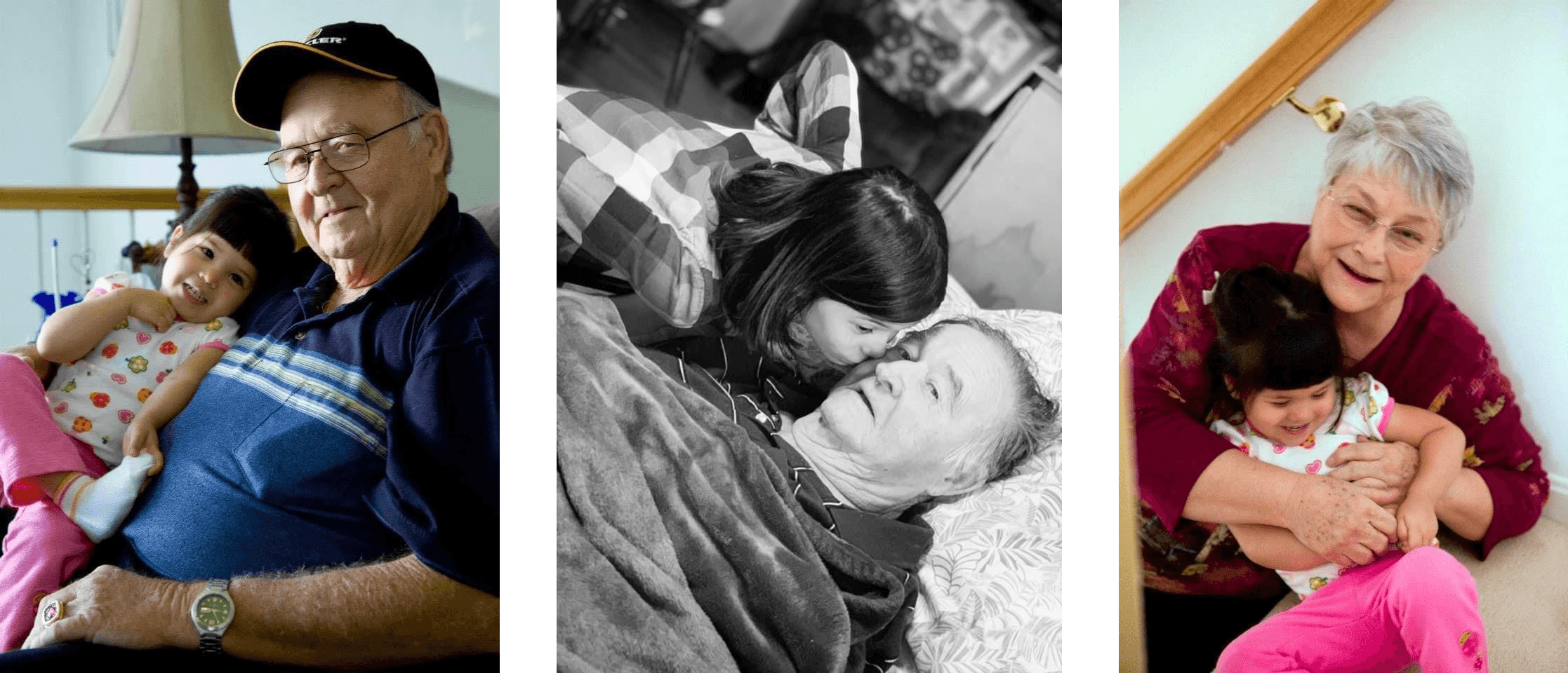 (Pictured Below: Left to Right: April’s daughter with her great grandfather (2 photos), April’s daughter with her great grandmother)